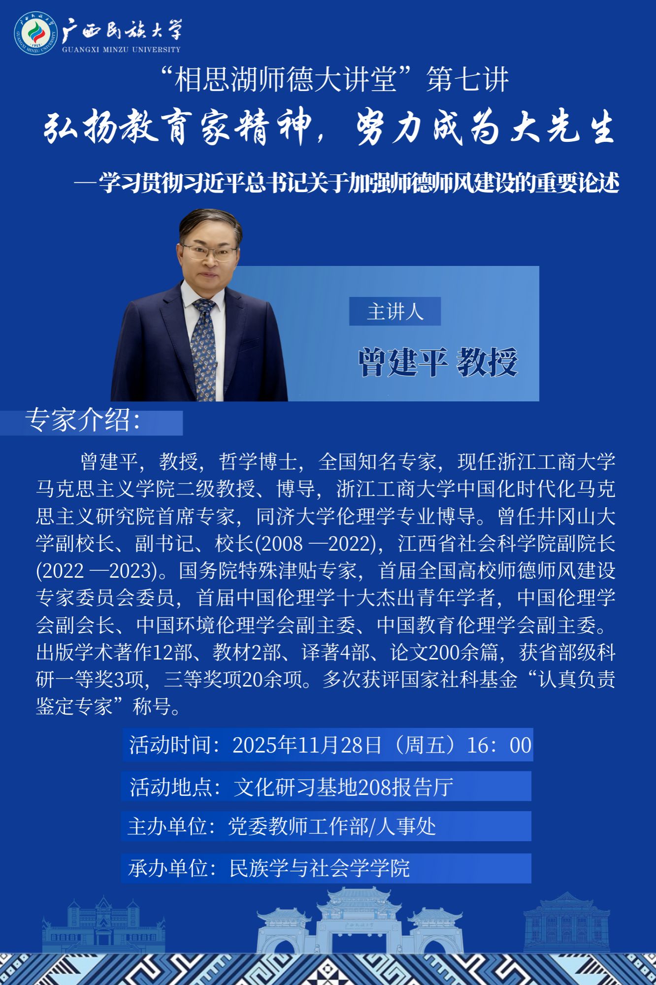 【教育家精神铸魂强师】广西民族大学“相思湖师德大讲堂”第七讲